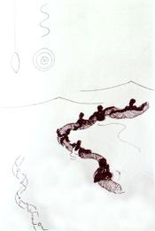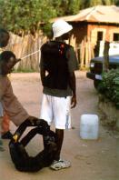 Most people in and around the village of Gunjur do not swim, including the hundreds of fisherman who reside here either temporarily or permanently. The flotation device project is intended to reduce the number of drownings and exemplify a potential local industry. One device is a simple vest containing empty, discarded plastic water bottles. Another is a long, thin tubular net also containing empty water bottles. The "tubular" version, which was tested with the most success, can be used by the full crew of a large fishing boat and is easily stored, out of the way, around the boat's gunnel. A third method also designed and fabricated in Gunjur is a wrap with handles that uses fuel containers, already aboard, for flotation.