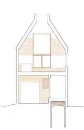 East-West section through living space, horse stall and water cistern.
